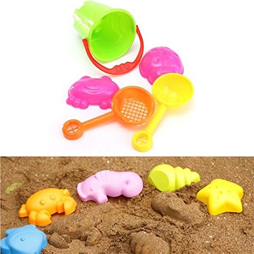 5Pcs Mini Summer Ocean Sand Beach Kids Sea Toys Castle Bucket Spade Shovel Rake Water Tools Can be used to rake, dig, pile, mold and build the sand castle. Unique shapes and bright colors, can attract children's attention. Let the children can play in the beach and enjoy the sunshine, while being able to promote their creativity and initiative. Perfect for beach, sandbeach, seaside, swimming pool, bathtub etc. This is a good gift to your children :)