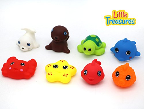 A key part of any baby’s routine, bathtime is the bit of the day where you can finally all relax and have some fun before it's time for bed.Rather than make it a chore, inspire their imagination with our pick of the best bath toys.We tried and tested every one of these to make sure they really are the splishiest, splashiest fun money can buy. Just add bubbles.Baby Bath Toys for babies of age 18+ months the toy set is a collection of 8 sea animals in bright colors, could be easily stored in a net bag with tie is best for your babyBath toys can primarily boost your child's spatial awareness, fine motor skills, cognitive reasoning and hand-eye coordination, very much necessary in initial years of growth. The bath game with its slightly tricky water squirting exercise will make your child giggly and super thrilled, bringing a positive result in behavior. Bright, rich and vibrancy of color is an aimed strategy to affect the growing minds and entice the kid with various toy-parts of different designs, therefore engrossing children instantaneously in a game that is productive in all aspects. The toy is set to provide a joyful playtime to the parents and kids alike, allocating a special time to spend as a family, productively. Perfect for babies always looking for distractions - have fun with the smiling faced, multicolored plants, pots, turtles and flowers! Watch your little one giggle with the squeaky sounds being produced when pressing the soft toys; an ideal toy to flourish their imagination in the bath tub! A collecting net is also provided to fish out the toys floating on the water - you don't want any one of them missing. Enjoying bright and fine colors of yellow, pink, blue and purple, the water-pot just looks like a real one. Fill it in with water, let your child splash and squirt and rinse their hair alongside - they won't even notice! The educational toy is very popular among preschoolers. The reason being, the entire set has been made from non-toxic materials, very soft and easy to handle toy-parts. With respect to its manufacture, the toy set guarantees an amazing durability warrant. Ideally made with soft rubber plastic, the toy set forwards its warranty card regarding every constructional tact, either the toy's own development, or the toy-creating technique. Coming off as water proof is another prominent feature for toys of babies, something which many developers fail to take care of.