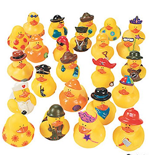 Ducks come in a pack 50 different style assorted rubber ducks.