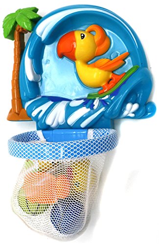 A key part of any baby’s routine, bathtime is the bit of the day where you can finally all relax and have some fun before it's time for bed.Rather than make it a chore, inspire their imagination with our pick of the best bath toys.We tried and tested every one of these to make sure they really are the splishiest, splashiest fun money can buy. Just add bubbles.VERZABO SURFER PARROT BASKETBALL - bath toy set for 12 months plus babies is best for your babySURFER PARROT BASKETBALL toy set consists of parrot surfer shaped basketball net pool with 2 balls, bee, fish and a starfish comb for new washing delight. Babies shoot basketballs into the net, playing with fish and bee characters or just pretend combing hair, as they play along with their parents during bath time. Babies learn names of different animals, colors and shapes, while acquiring muscle-eye coordination and muscle steadiness. Vigorous blissful colors of this special bath time basketball toy set retains babies elated fun state during their bath playtime. Bath toys can primarily boost your child's spatial awareness, fine motor skills, cognitive reasoning and hand-eye coordination, very much necessary in initial years of growth. The bath game with its slightly tricky water squirting exercise will make your child giggly and super thrilled, bringing a positive result in behavior. Bright, rich and vibrancy of color is an aimed strategy to affect the growing minds and entice the kid with various toy-parts of different designs, therefore engrossing children instantaneously in a game that is productive in all aspects. The toy is set to provide a joyful playtime to the parents and kids alike, allocating a special time to spend as a family, productively. Perfect for babies always looking for distractions - have fun with the smiling multicolored elements! Watch your little one giggle playing with this an ideal toy to flourish their imagination in the bath tub! Enjoying brightly colored created designs just looks like real ones. Fill it in with water, let your child splash and squirt and rinse their hair alongside - they won't even notice!