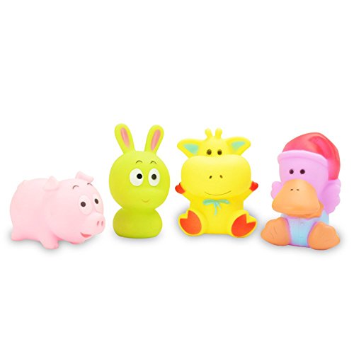 XDOBO Float & Squeak Rubber Funny Baby Bath Toy - the Forest Party (4-Pack)