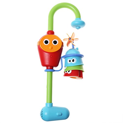 Bath Toy - A-szcxtop Flow N' Fill Spout Bathtub Toy: Make bath time fun! This automated play spout attaches to the tub and offers many ways to play with water. Water is drawn up and through the spout creating a safe and constant flow of water without having the faucet on. Your child will be amazed by the variety of options they can explore . This bathtub set comes with three interchangeable tumblers, each with its own different sprouting water action. The blue tumbler creates a showerhead, the the green has a water wheel, while the red tumbler has a hidden friend inside. Use the tumblers individually in the spout, stack them and watch the water run through all three at once, or play with them freely in the tub for hours of entertainment! All components are mom tested and child safe! It's the very essence of their approach to innovation in creating developmental toys that encourage your baby or toddler's personal developmental breakthrough.