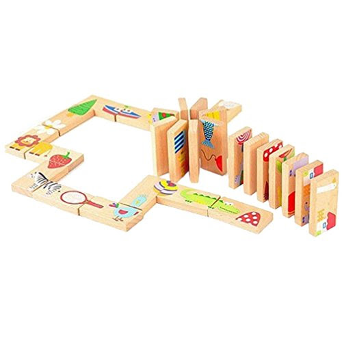 Happy Cherry 28 PCS Wooden Domino Racing Toys Game Colourful Animals Puzzle Building Block Set Toys for Baby Kids Children Toddlers