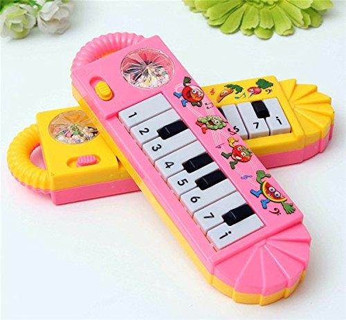 Baby Kids Musical Piano Early Educational Game instrument Developmental Toy This is a fashional and developmental mini piano for lovely babies. Design with a round handle on the top of the piano, it is convenient for babies' playing. The snowflakes will turn around when baby playing the piano, can develop babies' ability to understand sound and music.